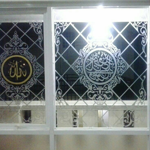 Pemasangan stiker kaca masjid menggunakan stiker kaca khusus yang biasanya terdapat motif kaligrafi dengan intnsitas warna yang beragam.